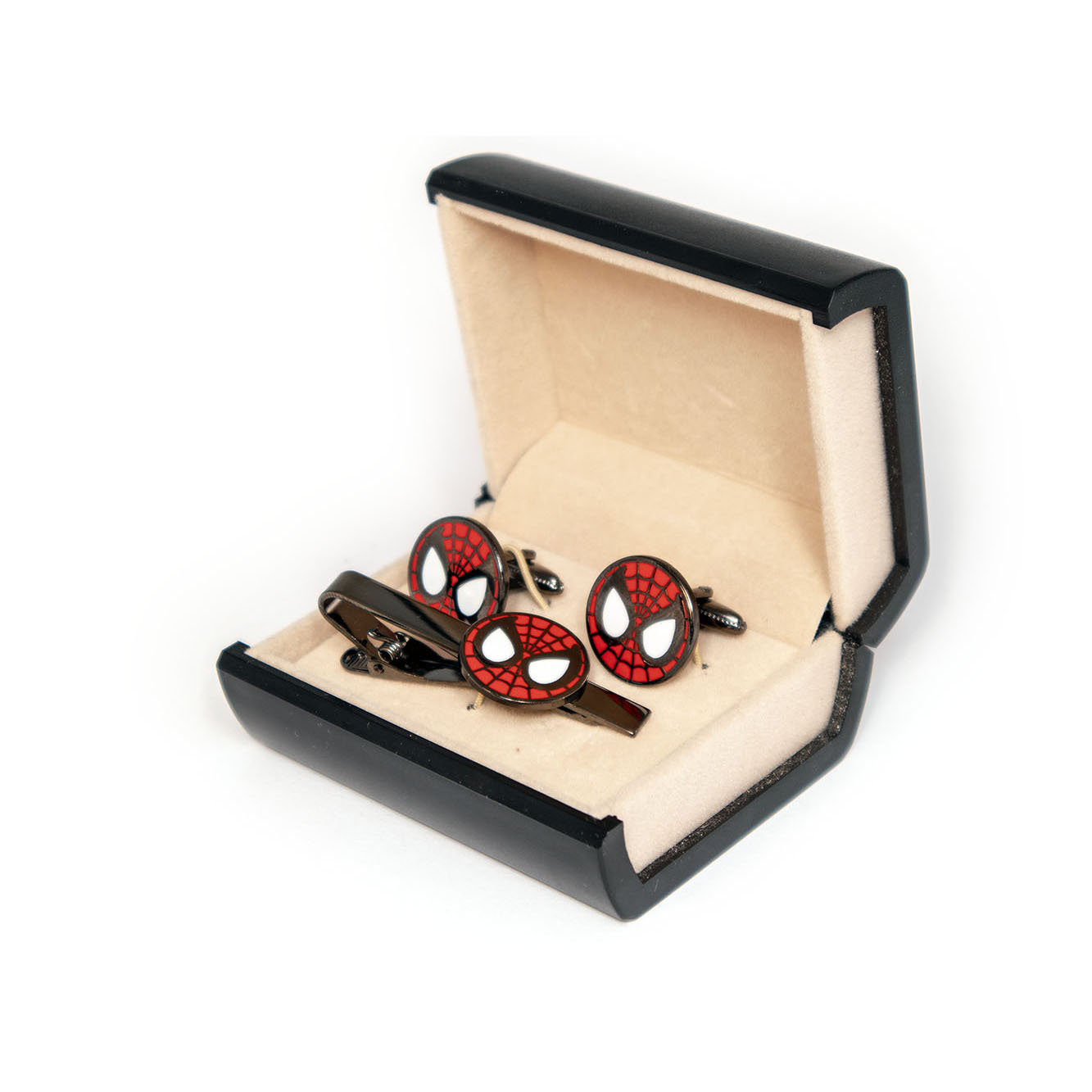 Spiderman Cufflinks, Marvel Avengers Spider-Man Tie Clip, Geek Comic Book Wedding Cuff Links, Geeky Groomsmen Jewelry Gifts