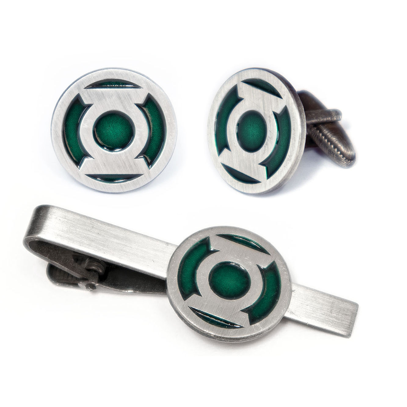 Green Lantern Cufflinks, Justice League Tie Clip Tack, Lantern Corps Cuff Links, DC Comics Wedding Cuff Links, Geeky Groomsmen Jewelry