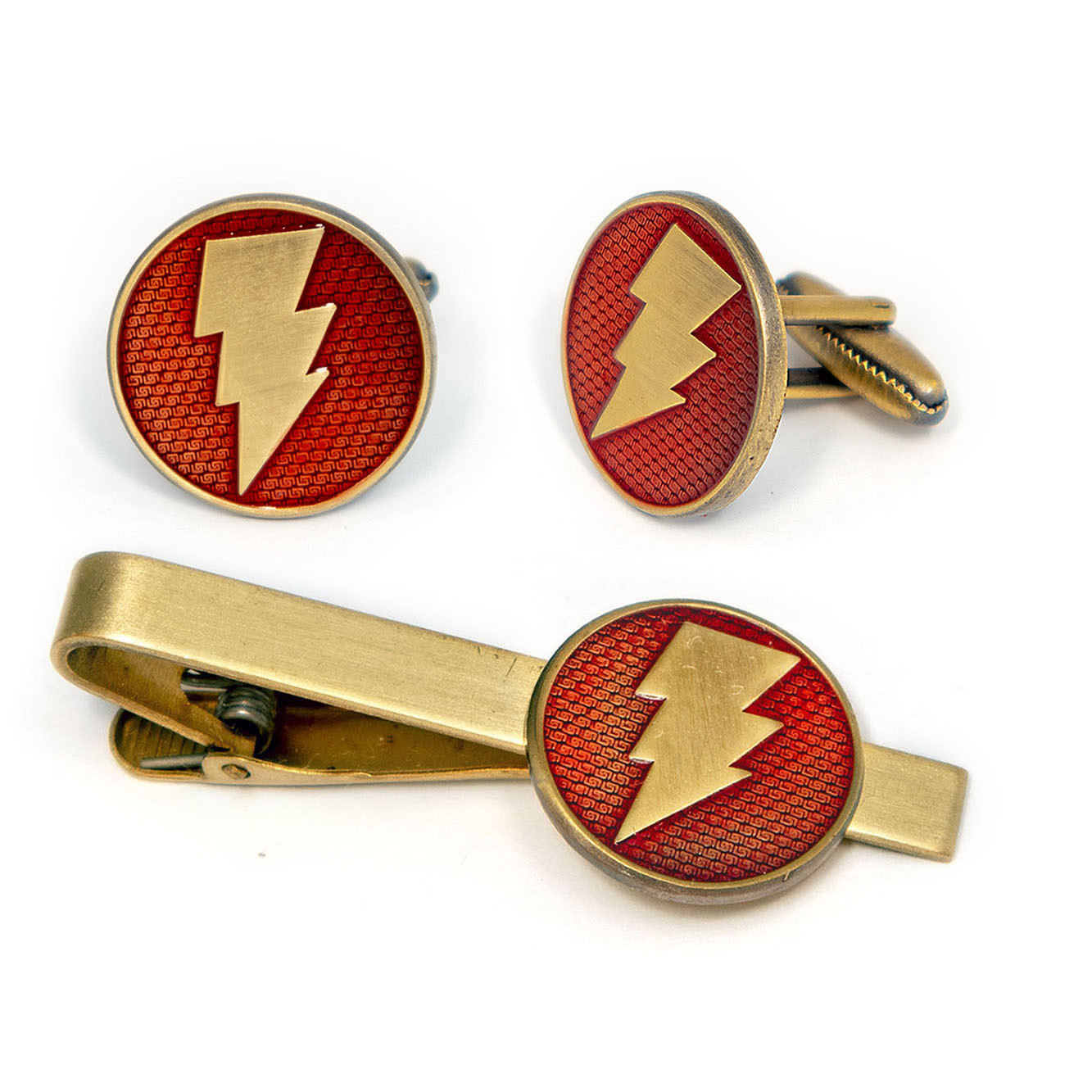 Shazam Cufflinks, Captain Marvel Tie Clip Tack, Justice League Cuff Links, DC Comics Wedding Cuff Links, Geeky Groomsmen Jewelry